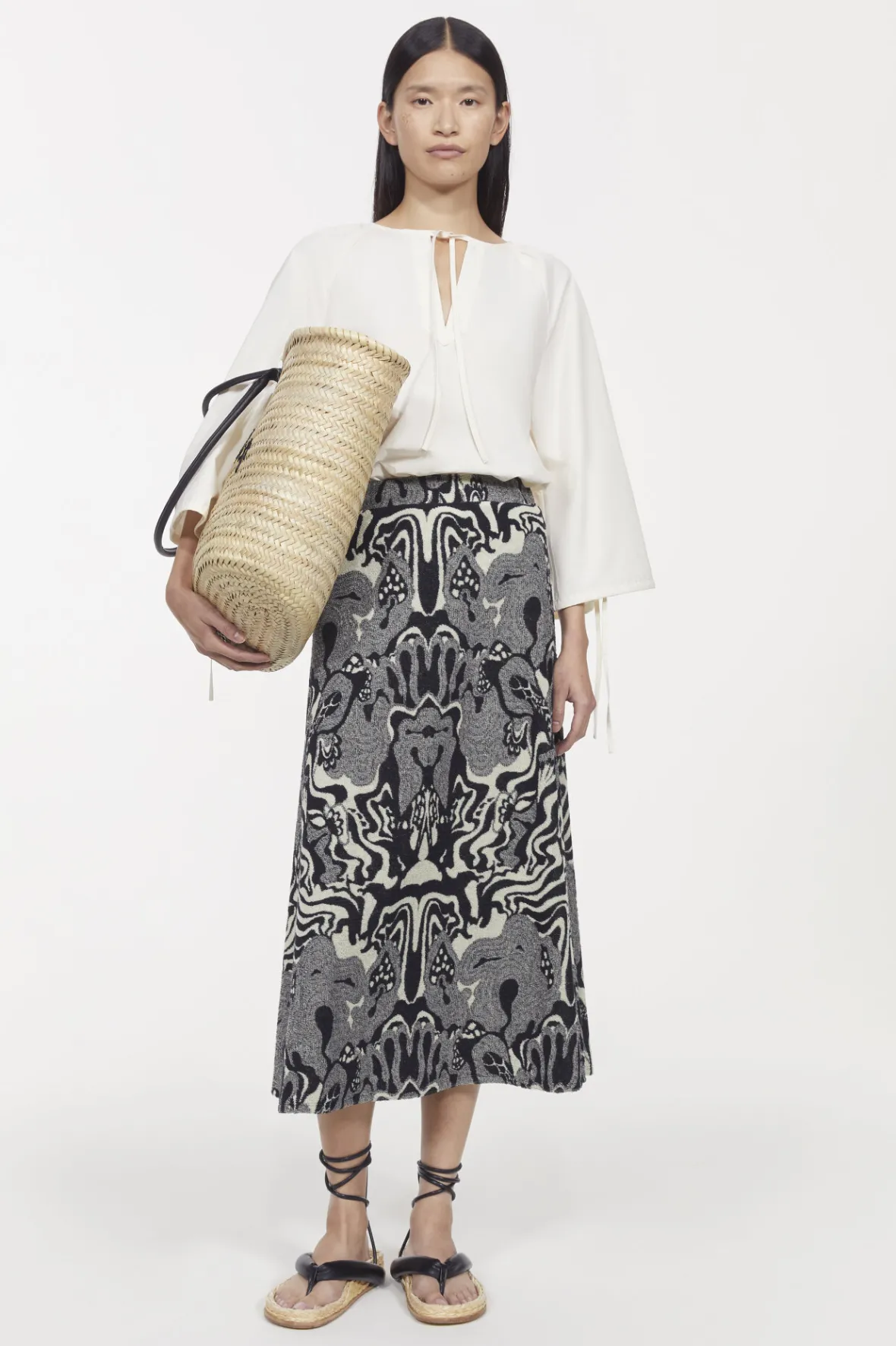 Made From Japanese Organic Cotton Terry, The Flora Skirt Showcases A Surrealist Jacquard Motif Reminiscent Of Ink Drawings. It Is Shaped With An Elasticated Waistband For Optimal Comfort, And Flares Towards Its Ankle-Length Hemline With Ease.