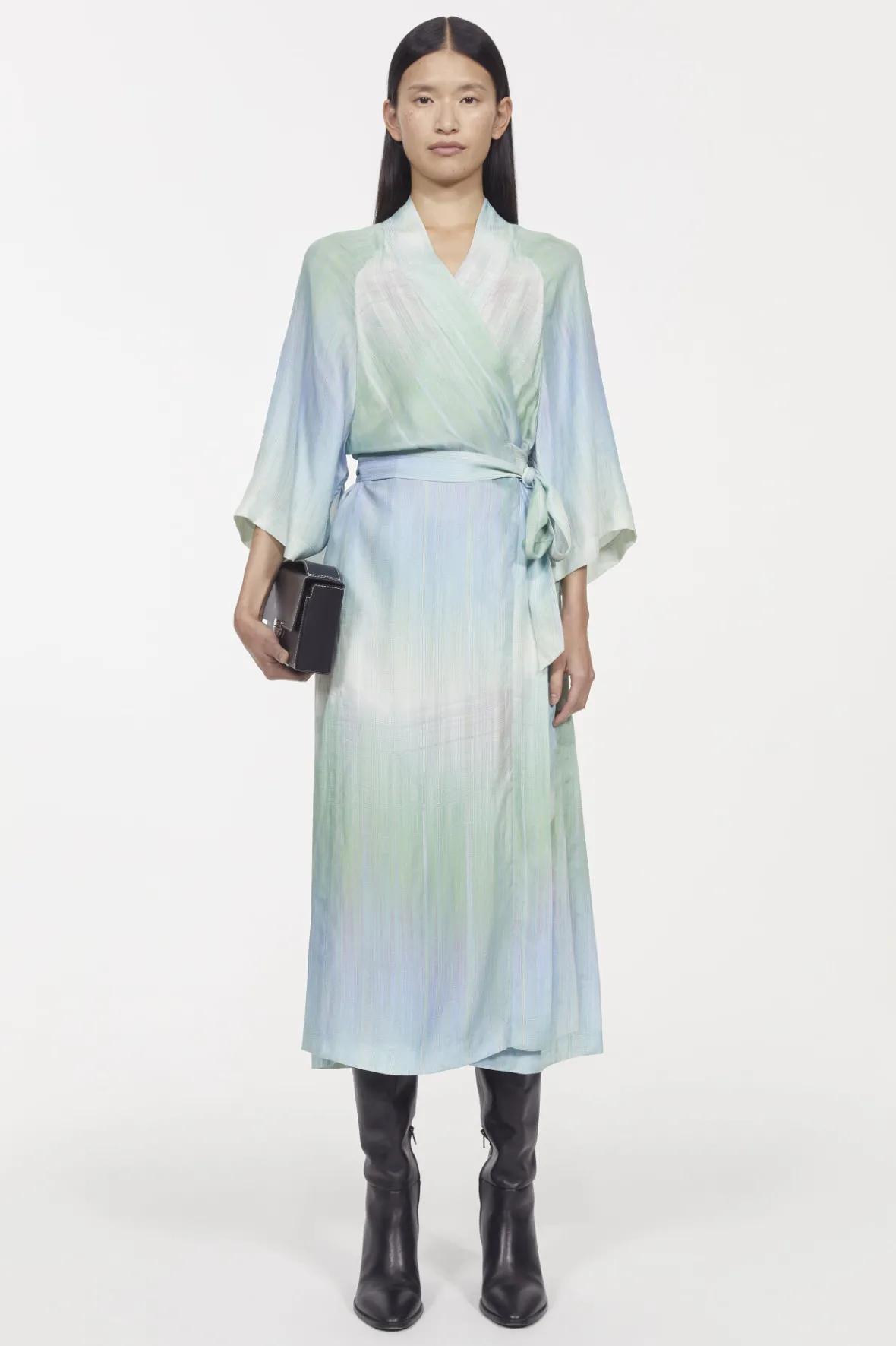 A Signature Rodebjer Design, The Mabelin Dress Explores The Boundaries Between Volume And Drape. Crafted From An Fcs-Certified, Sandwashed Cupro Blend That Maintains Its Artful Shape, This Piece Is Shaped With Wide Cape Sleeves, Side Slits And A Shawl Collar. A Wrap Closure Allows You To Adjust Its Silhouette To Your Choosing.
