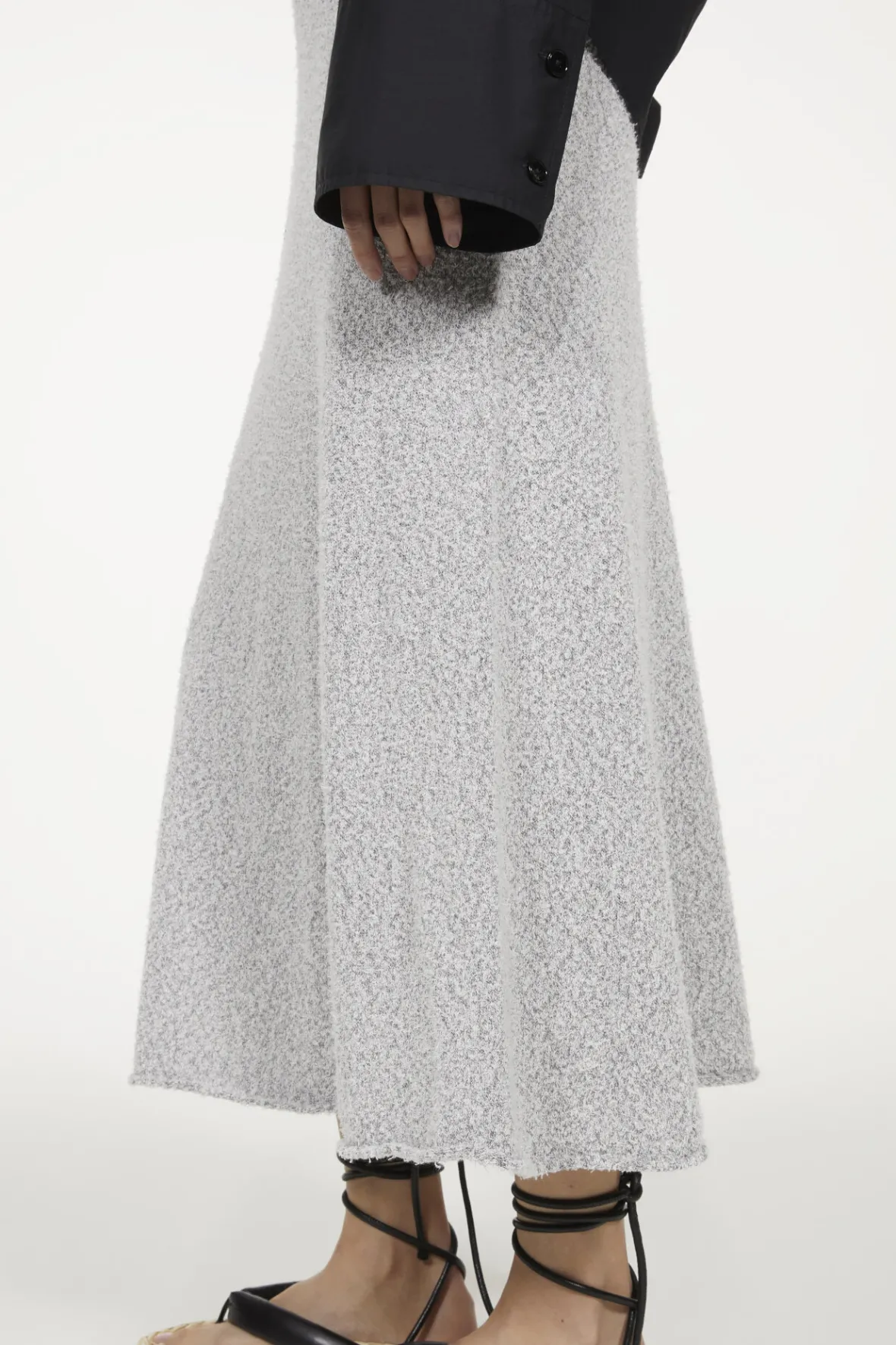 A Mélange Effect Brings Texture To The Minimalist Flora Skirt. Made From A Cotton-Mix Bouclé, The Design Has A High-Rise, Elasticated Waistband And Falls To A Flared Shape That Gently Gathers At The Hemline. Pair With Matching Tones And Woven Sandals.