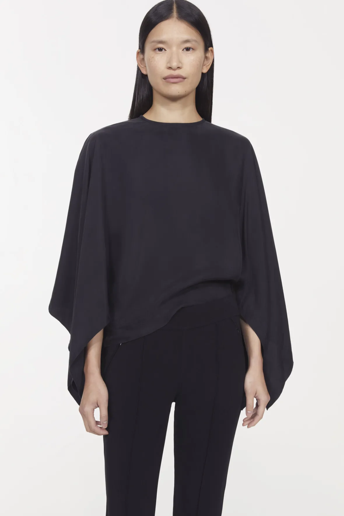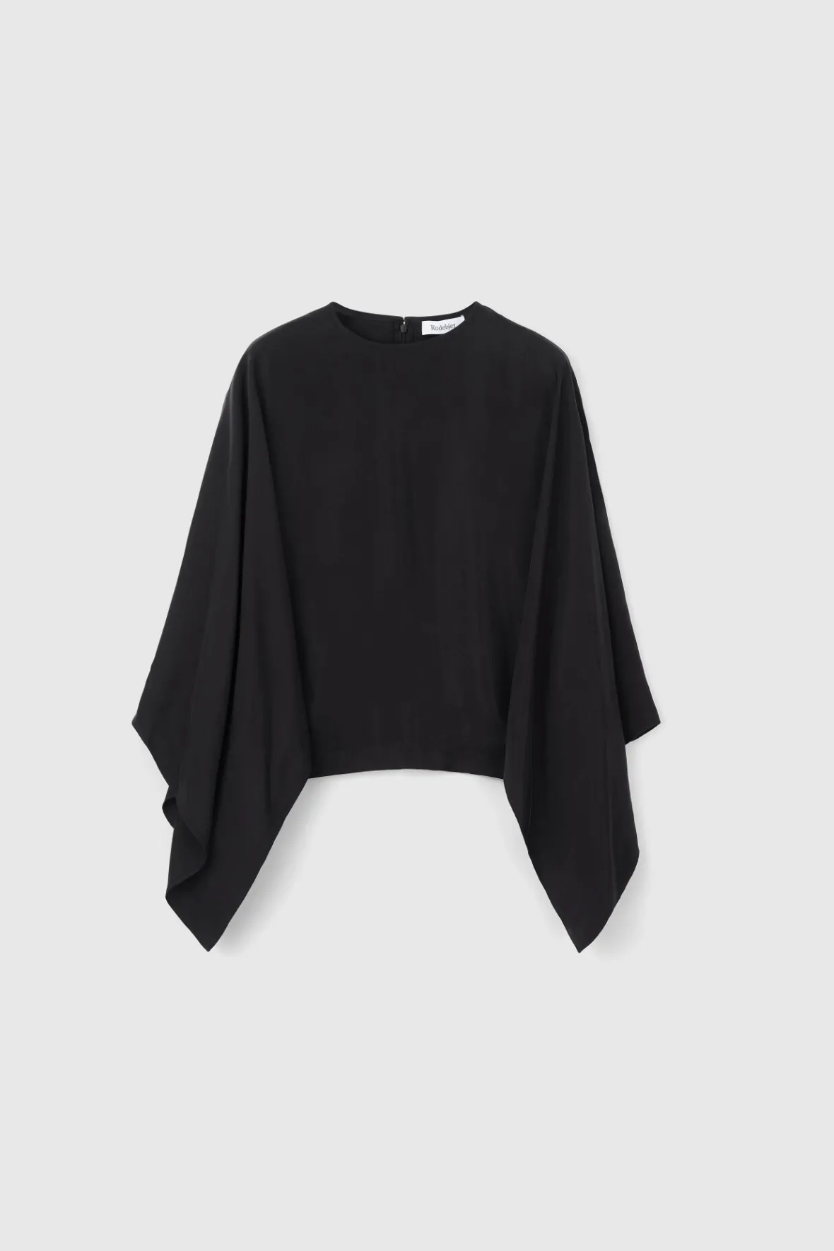 Lustrous In Both Look And Feel, The Gyoni Blouse Is Made From A Sandwashed Blend Of Cupro And Viscose. Its Fluid Fabrication Is Emphasized By Flowing Cape Sleeves, And It Is Shaped With A Round Collar And Concealed Zip Fastening At The Back. Pair With A Textured Skirt And Woven Sandals As The Seasons Starts To Change.